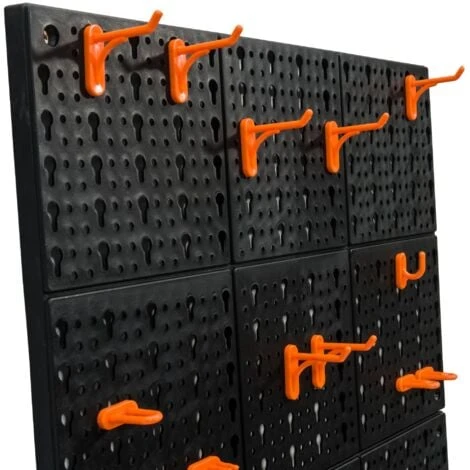 Description détaillée du produit: – 2 panneaux muraux – panneau à fixer – 2 montages possibles montage bords à bords – idéal pour ranger les outils dans un garage – plusieurs types de crochets pour suspendre les outils – dimensions 1 panneau: 33 x 50 cm – dimensions montage 1: 33 x 100 cm – dimensions montage 2: 50 x 66 cm Vendu sans outil