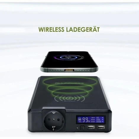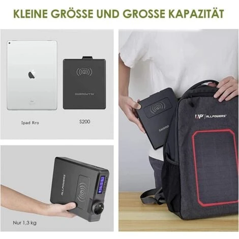 - 【5 sorties avec chargeur sans fil 】 : la centrale électrique portable Allpower est équipée d’une batterie de 154 W.Dispose de 1 port AC (200 W, Peak 240 W), 2 ports USB (5 V/3 A), 1 port USB-C (5 V-12 V, réglage automatique de la tension en fonction de l’appareil) et un chargeur sans fil (5 V/2 ,1A).