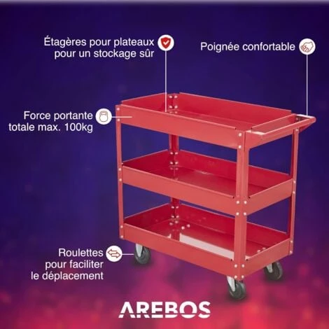 Chariot à roulettes d’AREBOS – le asuper assistant pour les ateliers, les ménages ou entreprises