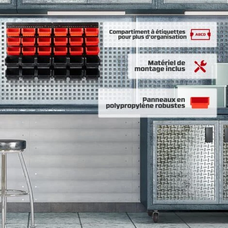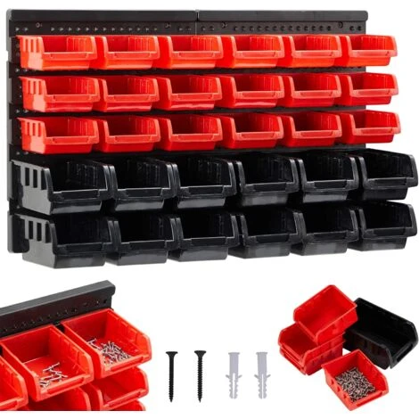 AREBOS – SUPPORT MURAL DE 32 PIÈCES AVEC BACS EMPILABLES