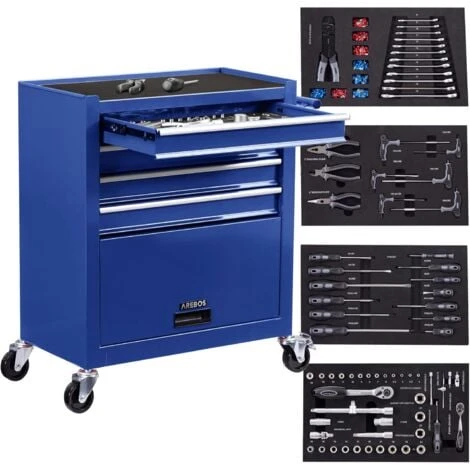 Chariot d’atelier AREBOS – avec 4 tiroirs y compris les outils, et un grand compartiment