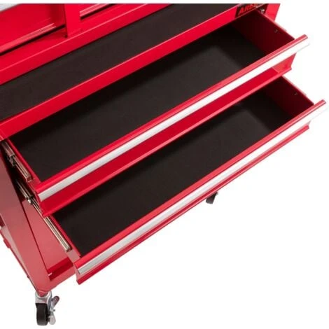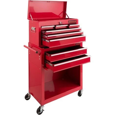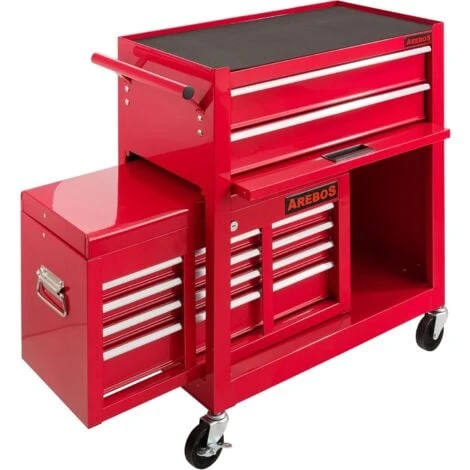 - Notre chariot d’atelier AREBOS est équipé d’un total de 8 tiroirs, d’un tiroir pliable et d’un grand espace de rangement