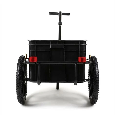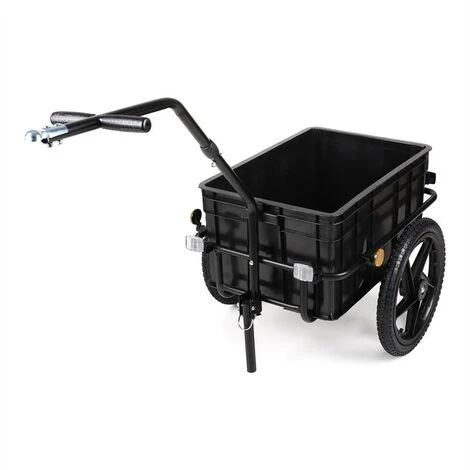 La carriole Big-Black-Mike est également très pratique lorsque vous faites vos courses. Transportez vos boissons sans peine jusqu’à la maison grâce à sa construction en métal. Il peut également être séparé du vélo pour être utilisé comme chariot à main. Le montage et le démontage sont en outre très rapides grâce au raccord en forme de boule. Les poignées sont disposées à une hauteur confortable pour une utilisation à la main et une béquille permet également de le garer sans problème sur tous les types de terrain.