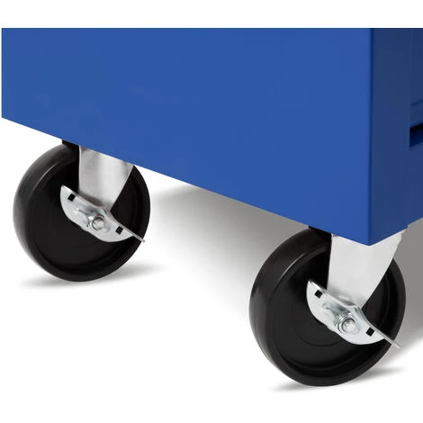Grâce à ses 4 roulettes, le chariot datelier est mobile et facile à déplacer. 2 roulettes sont fixes et 2 roulettes sont pivotables. Les roulettes pivotables possèdent en outre un frein de stationnement chacune. Une poignée confortable permet de diriger le chariot facilement.