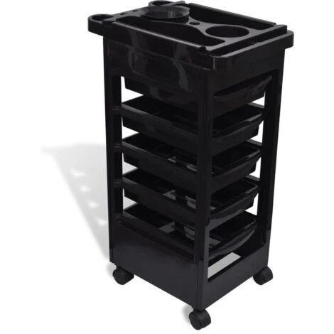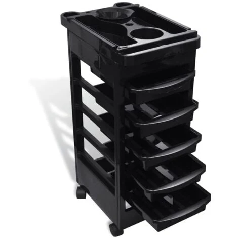 Ce chariot offre tout ce que vous attendez d’un chariot de salon de haute qualité. Il a un design simple mais élégant et offre un total de cinq tiroirs divisés pour vos outils et accessoires.