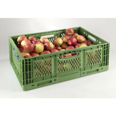 Grâce à la construction sophistiquée des coins et des bases, les conteneurs sont extrêmement stables et très faciles à empiler. Pour éviter que les fruits et légumes et les cartons d’œufs ne soient endommagés pendant le transport, les parois latérales perforées sont particulièrement lisses et sans arêtes vives.