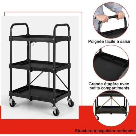 - 【Multi-usage en diverses occasions】Avec un design pratique et classique, notre chariot pliant à 3 niveaux peut servir de chariot de stockage, chariot d’épicerie, chariot à outils, chariot de service selon vos besoins. De plus, il est portable pour de multiples occasions, telles que l’atelier, l’entrepôt, le bureau, la buanderie, la cuisine, etc.