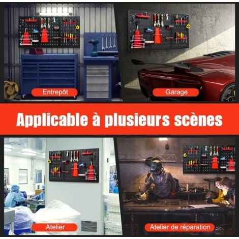 - 【Utilisable Partout : 】 Ce panneau perforé est équipé de six boulons d’expansion et des vis et écrous nécessaires, de sorte que vous pouvez monter le panneau perforé sur plusieurs types de murs plats. Ce panneau perforé pratique et polyvalent convient à de nombreux lieux, tels que l’entrepôt, le garage, l’atelier, l’atelier de réparation, etc.