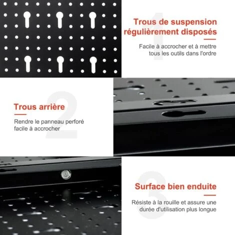 - Chaque panneauperforé peut supporter jusqu’à 20 kg