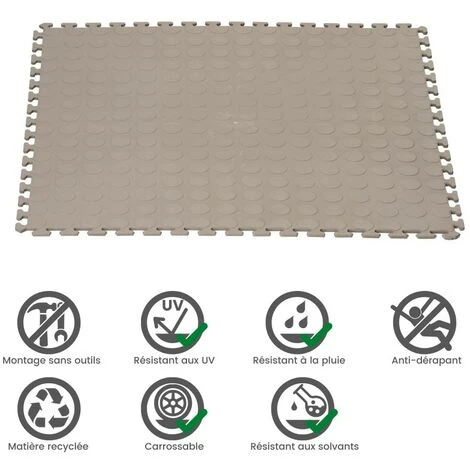 La dalle se pose rapidement grâce à ses clips mâles et femelles. Si besoin, elle se découpe simplement au cutter. Pratique, son épaisseur de 0,5 centimètre seulement permet de la glisser sous les portes et volets existants.