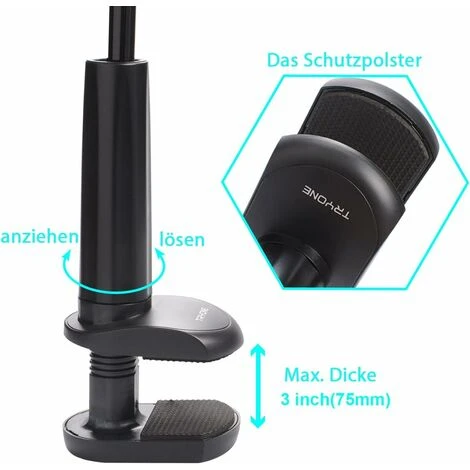 - 【Conseils d’utilisation】 1. Si vous le tenez avec une tablette lourde, nous vous recommandons de positionner le col de cygne en « » S « » « ou de forme circulaire car cela offre plus de stabilité. 2. Pliez le col de cygne avec les deux mains lors du réglage de la position car il est vraiment rigide. L’écrou de vis sera cassé si le bras est violemment tiré pendant le réglage. 3. Ne serrez pas excessivement la pince de base pour qu’elle ne se casse pas.