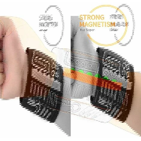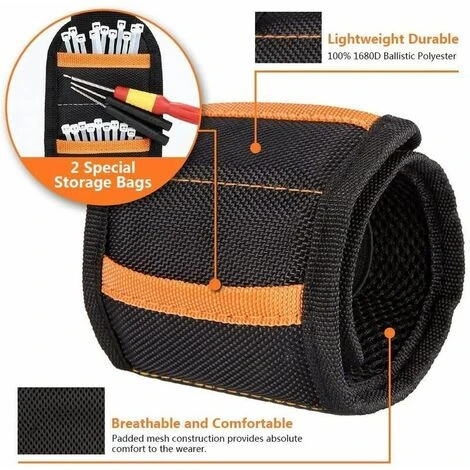de petites pièces dans une boîte à outils ou un sac. [= Plus fort que les produits similaires sur le marché, presque sur tout le poignet. Il peut facilement fixer des vis, des clous, des boulons, des rondelles et des forets. Atteignez votre troisième main lorsque vous en avez le plus besoin. [Deux poches uniques pour objets non magnétiques] Le bracelet à outils magnétique possède deux petites poches pouvant contenir des pièces en plastique pour améliorer l’efficacité du travail. Lorsque vous travaillez, vos mains peuvent travailler normalement,