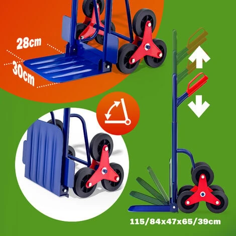 Ce diable pratique est équipé de roues disposées en forme d’étoile vous permettant de transporter des charges lourdes et de franchir aisément les marches d’un escalier. Par ailleurs, ses poignées de sécurité en plastique ainsi que son cadre en tubes d’acier assurent une manipulation en toute sécurité.