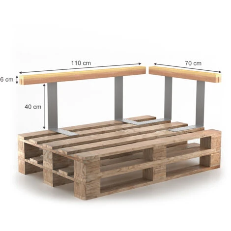 - Les éléments de dossier et d’accoudoir sont directement fixés sur la palette à l’aide de deux équerres en acier.