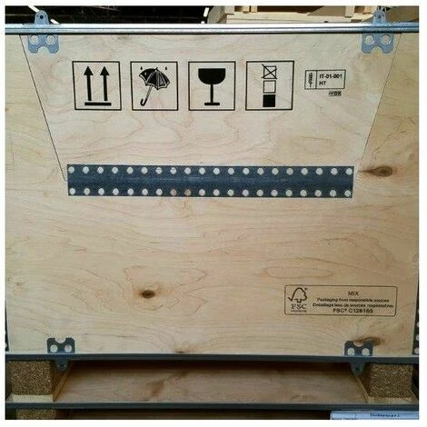 Une caisse est composée dun fond-palette 4 entrées traité selon la norme NIMP 15 FAO, dun couvercle et dune ceinture avec abattant.