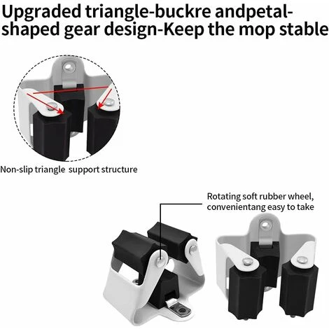 Adoptez la conception gravitaire avancée.Mettez simplement la tige de balai dans la fente et laissez aller.les billes de roulement adaptent automatiquement à l’épaisseur.Les articles seront fermement fixés sans crainte de tomber.