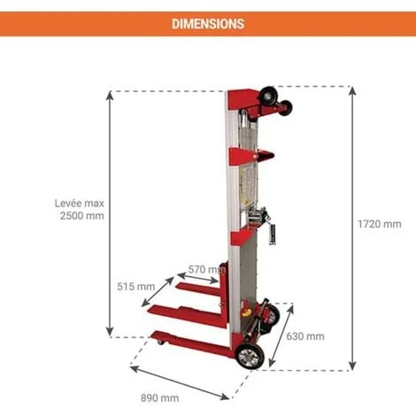– Modèle de gerbeur pouvant lever et déplacer des charges facilement, jusqu’à 2,50m grâce à ses montants téléscopiques