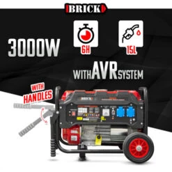 Groupe électrogène Max 3000W Avec Roues – 2 Prises – AVR – Essence – Brick