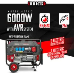 Groupe électrogène Max 6000W Avec Roues Et Prise Triphasée – Brick