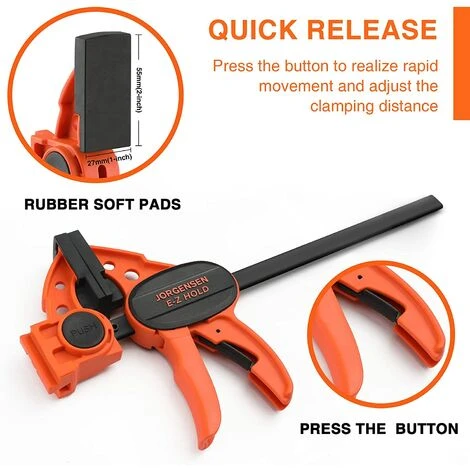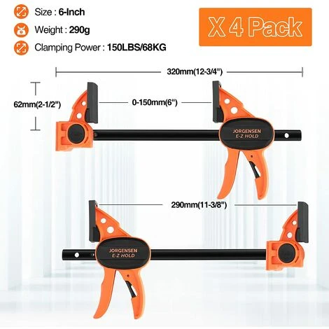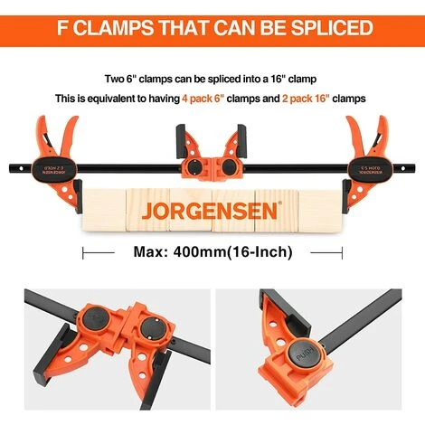 【Outil indispensable】Avec la force de compression de 68 kg, Jorgensen serre-joint offre un choix idéal pour le menuisier ou d’autres l’amateur de DIY et professionnels. Les serres-joint sont légers, mais robustes, ce qui permet de maintenir la pression pendant une longues période