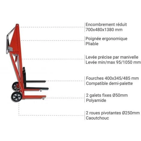 – Robuste, léger et compact il est particulièrement adapté pour les opérations de petite manutention et les petits commerces.