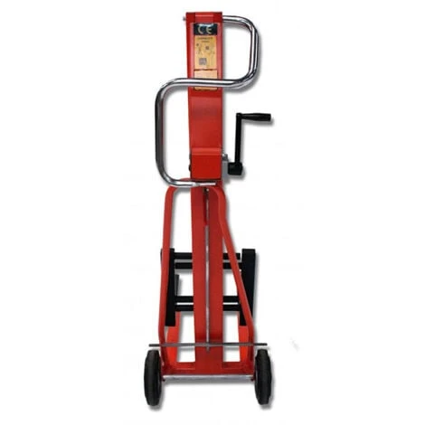 – Ce mini gerbeur est équipé de petits galets pour passer sous les palettes
