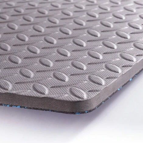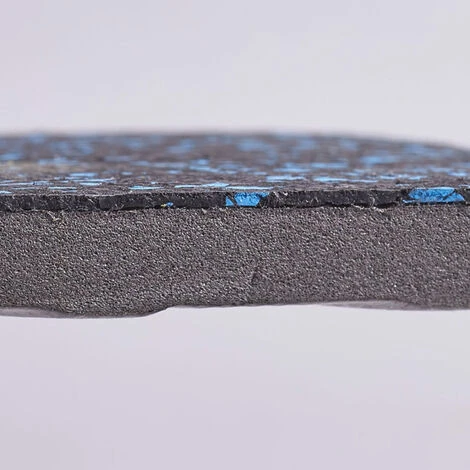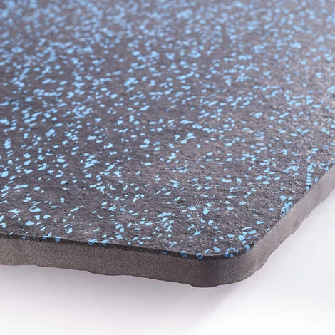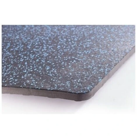 Support multi couches : constituer de 10mm de mousse de très haute densité 97Kg au M3 et de 2mm de caoutchouc recyclé noir, moucheté bleu.