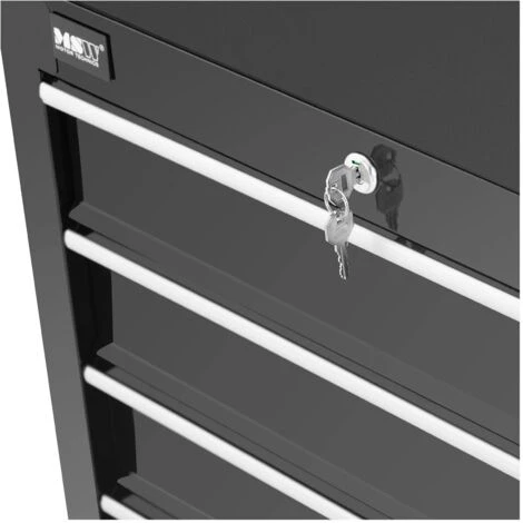 La servante d’atelier à cinq tiroirs, la solution pour un rangement sûr et ordonné !La servante d’atelier MSW-WWG-12 de MSW – votre référence pour l’équipement d’atelier de qualité – est un matériel robuste qui engloutit tous vos outils, qu’elle garde au propre et à l’abri. Qu’il s’agisse de clés, de marteaux, de pinces, de couteaux à lame rétractable ou de burins, vous pouvez tout y ranger. Qui plus est, ses cinq tiroirs verrouillables préviennent tout accès non autorisé. En somme, elle est si pratique qu’elle ne devrait faire défaut dans aucun atelier de mécanique, d’ébénisterie ou de bricolage amateur ou professionnel !Un chariot de transport issu de la gamme d’outillage professionnel MSWElle possède cinq tiroirs de 51 x 28 x 10 cm qui supportent une charge maximale de 5 kg chacun. Ils sont surmontés d’un plan de rangement et de travail qui admet une charge de jusqu’à 25 kg. Au total, ce chariot à outils présente donc une capacité respectable de 50 kg. À l’intérieur des tiroirs et sur le plan de travail de 61 x 32,5 cm, des tapis en silicone sur mesure réduisent grandement le vacarme, préviennent les rayures et ménagent les outils rangés. Avec eux, rien ne glisse !Comme cette servante d’atelier est équipée de quatre roulettes agiles et d’une poignée large, elle demeure maniable et facile à diriger même à pleine charge. Au besoin, deux freins permettent de bloquer ses deux roulettes pivotantes afin de prévenir tout déplacement intempestif. Une serrure solide empêche les tiroirs de s’ouvrir pendant le transport, en plus de garantir qu’aucune personne non autorisée n’aura accès à leur contenu. Deux clés sont comprises dans l’envoi.Cette servante d’atelier vide est faite d’acier peint par poudrage, ce qui la rend particulièrement robuste et durable dans les environnements rudes tels que les ateliers de mécanique et les sites de production. Tous les matériaux dont elle se compose sont très faciles d’entretien. Par conséquent, il ne fait aucun doute qu’elle vous rendra de fiers et loyaux services de nombreuses années durant !