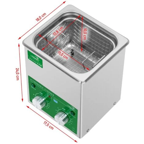 Il possède une structure stable et fiable et dispose d’une cuve de nettoyage de qualité d’une capacité de 1,5 litres, d’un habitacle et d’un panier de nettoyage en acier inoxydable ainsi que de pieds en caoutchouc antidérapant. Le régulateur rotatif, situé au-devant du Nettoyeur à ultrasons Proclean 2.0M, permet de programmer la durée de nettoyage entre 5 et 60 minutes. De plus, une marque vous indique lorsque la cuve est remplie d’eau au deux tiers, ce qui rend l’utilisation du nettoyeur intuitive et facile. Grâce à sa fréquence de son de 40 Hz et à sa puissance à ultrasons de 60 watts, cet appareil vous permettra d’obtenir un degré de propreté quasi parfait. Ainsi ce nettoyeur à ultrasons professionnel est capable de nettoyer les impuretés les plus persistantes et les plus difficiles à nettoyer.