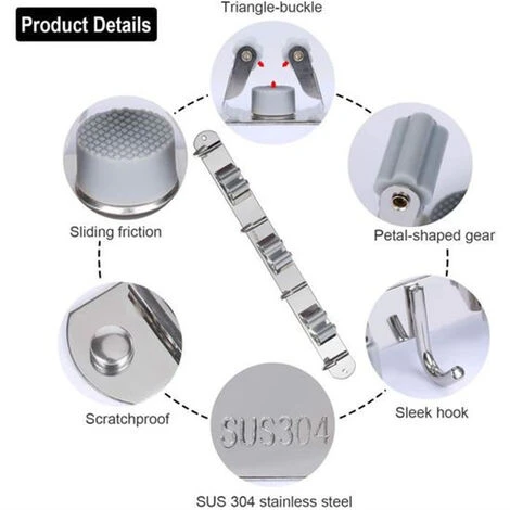 - 2. L’organisateur d’outils est conçu pour contenir divers articles ménagers avec une poignée de 2 à 4 cm de diamètre – peut contenir 1,6 po. – Le support s’adapte automatiquement aux différentes épaisseurs de la poignée pour s’adapter à tout ce que vous voulez accrocher.