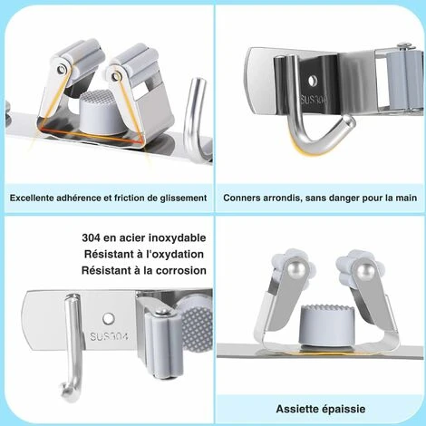 Choix IdéalSupport Mural Balai en acier inoxydable permet de trier les balais, les vadrouilles, les brosses, les pelles, les rateaux, les outils de jardin, etc. Choix idéal pour la maison, la cuisine, la salle de bain, le garage, le jardin.
