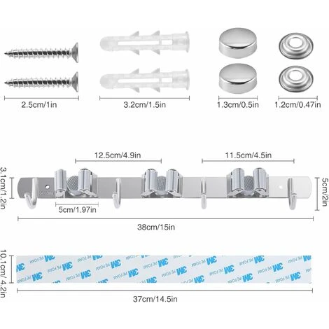 Convient à un usage intérieur et extérieurNous recommandons un montage par vis car la capacité de charge est relativement bonne.Si vous sélectionnez une installation auto-adhésive pour les surfaces lisses, Veuillez noter que la Porte balais mural a une capacité de charge maximale de 13.6 lb (30 kg).