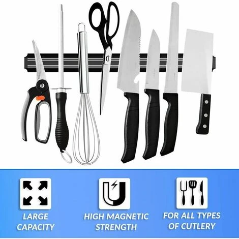 AIMANTS EN NÉODYME POUR UNE RÉSISTANCE ACCRUE :Notre barre aimantée porte couteaux contient la puissance des aimants permanents les plus puissants disponibles sur le marché sur toute sa surface. Les aimants à haute résistance intégrés dans notre aimant