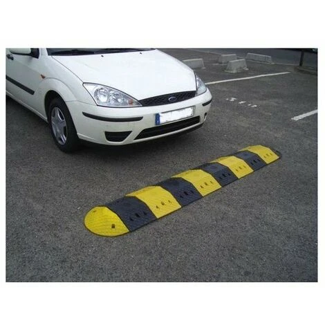 Ralentisseur en kit pour voies privĂ©es, en caoutchouc recyclĂ© noir et jaune rĂ©sistant aux UV. VisibilitĂ© parfaite de jour comme de nuit. ÉquipĂ© de passe câble diamĂŞtre 27 mm et de 2 rĂ©flecteurs par Ă©lĂ©ment. Mise en place sur tous types de support (bĂ©ton, asphalte…). ÉlĂ©ment central et embout sont vendus en lot de 2 (1 jaune + 1 noir). Charge maxi : 20 t Hauteur : 50 mm Zone : 30 km/h