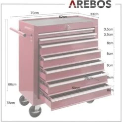 AREBOS Servante Caisse à Outils Chariot D’Atelier 7 Tiroirs Rouge Résistante Aux Rayures