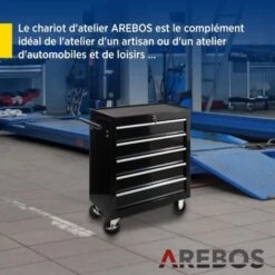 AREBOS Chariot D’atelier 7 Tiroirs Verrouillable 4 Roulettes Tapis Antidérapants Noir