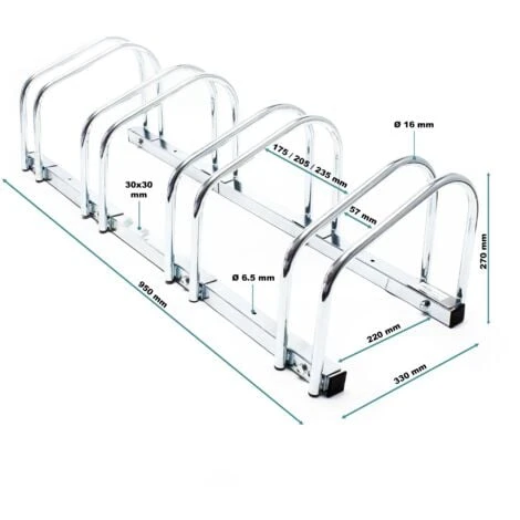 Râtelier au sol pour 4 vélos 95x33x27cm métal galvanisé bicyclette