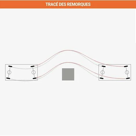 – Les remorques doivent être tractées de préférence par une motrice avec roues directrices à l’avant, afin d’éviter toute détérioration liée au braquage trop courts