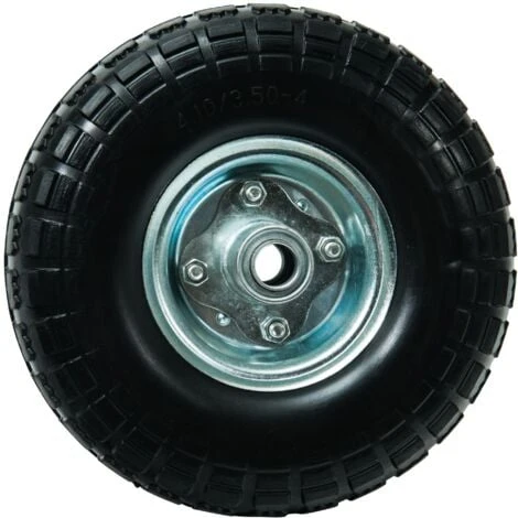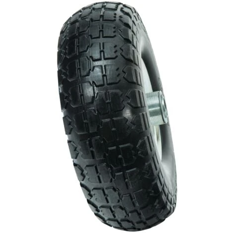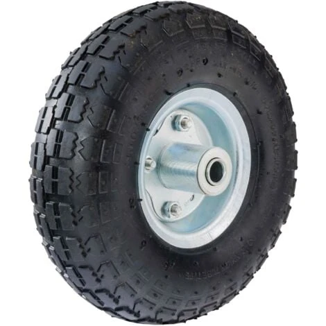 Informations techniques: Roue increvable Dimensions: 260 x 85 mm Alésage: 20 mm Moyeu: 54 mm Axz déporté Jante métal démontable 2 roulements à billes Coloris: Gris galva Pneu à crampons