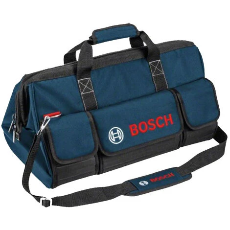 Le sac à outils de Bosch dispose de plusieurs poches intérieures et extérieures pour ranger les outils, accessoires et fixations. La partie inférieure est équipée de rails cannelés pour plus de stabilité. Le sac est doté d’une fermeture éclair de qualité, d’un logo Bosch brodé et de bandes réfléchissantes pour une meilleure visibilité. Il possède également une poignée de transport rembourrée et une bandoulière amovible pour une manipulation sûre et confortable.