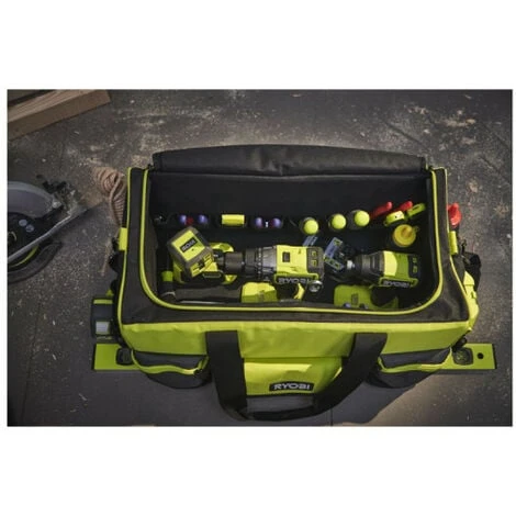 Lesac de rangement renforcé RYOBI – 49 L – RSSLTB1 est idéal pour vos déplacements ! Il est doté d’une base rigide et renforcée, résistante à l’eau, pour une protection optimale de vos outils. Ce sac de 49 L assure votre confort et une bonne résistance avec une bandoulière rembourrée, une poignée renforcée et des poches en tissu résistant et durable. Ce sac fonctionnel est composé de multiples emplacements pour ranger tous vos outils; une poche principale très spacieuse, des poches zippées, des poches ouvertes et une accroche pour votre mètre. Cet accessoire est donc conçu pour des déplacements, dans des lieux humides compris, tout en étant fonctionnel et confortable.