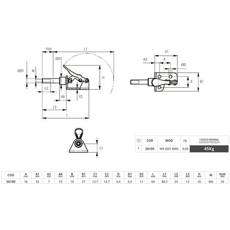 Base De Montage Sauterelle En Tirant-poussant M8 – 56113 – Piher