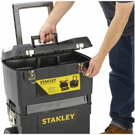 Depuis 1843, STANLEY® est le partenaire privilégié des professionnels. Leader du secteur en matière d’innovation, STANLEY® travaille aux côtés d’experts en outillage et développe des outils dans un souci d’excellence pour en faire «?LA RÉFÉRENCE PRO?». Fière de sa réputation d’excellence, la marque met tout en œuvre pour tester, concevoir et améliorer en permanence ses produits, afin de garantir une qualité et un fonctionnement optimal. STANLEY® a fabriqué certains des outils les plus innovants et utiles au monde, comme par exemple le rabot Bailey®, la lime Surform®, le mètre à ruban PowerLock® ou encore la toute dernière gamme de produits FATMAX®. La servante d’atelier carbone 1-93-968 STANLEY offre une grande capacité de stockage de 39 L pour ranger et transporter le maximum d’outils et d’équipements. Les professionnels bénéficient d’éléments autonomes 3 en 1, dont une boîte à outils pour les outils les plus usuels, un coffre de rangement électroportatif pour les équipements encombrants et un carrousel rotatif pour les vis et accessoires, garantissant une meilleure organisation des outils. Ils profitent également d’organiseurs sur le couvercle pour mettre les pièces de petites dimensions. Chaque compartiment possède des attaches métalliques de haute résistance pour plus de robustesse, avec possibilité de verrouillage par cadenas pour plus de sécurité. La servante d’atelier carbone assure un déplacement aisé et sans effort, grâce à ses roues et sa poignée télescopique ajustable, ménageant le dos de l’utilisateur. Elle accompagnera les professionnels pendant de nombreuses années et convient parfaitement à un usage intensif en milieu industriel, grâce à sa construction bien pensée en matière synthétique ultra résistante et ses attaches en métal robuste.