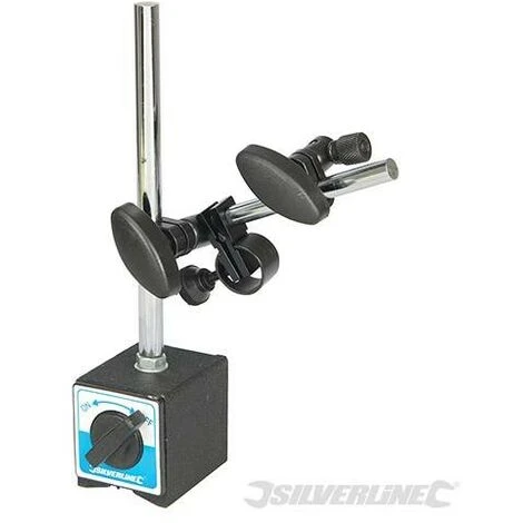 Support magnétique à embase rectifiée et un pan rectifié, permettant des installations diverses. Vis de réglage de précision pour un réglage rapide de la hauteur. Aimant double-face puissant, interrupteur marche/arrêt. Hauteur 235 mm.