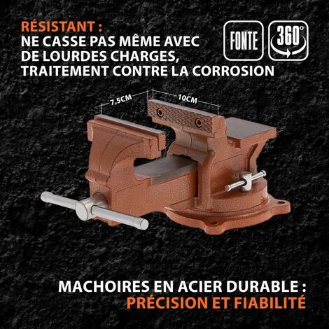 | Son caractère pivotant permet de l’adapter à tous les besoins. Vous pourrez travailler selon l’angle le plus adapté à vos besoins, et sur différents cotés d’une pièce sans avoir à la desserrer puis la resserrer. | |
