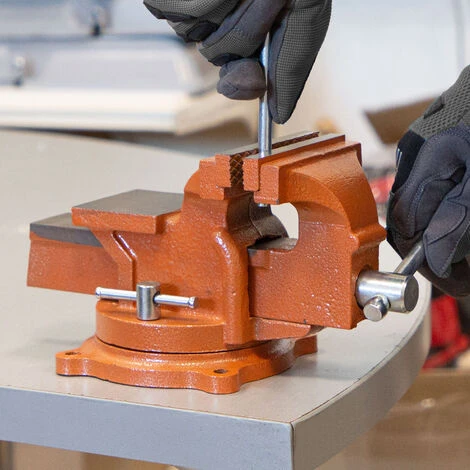 Étau d’établi pivotant avec enclume, se fixe solidement sur un plan de travail à l’aide de 4 vis.