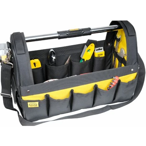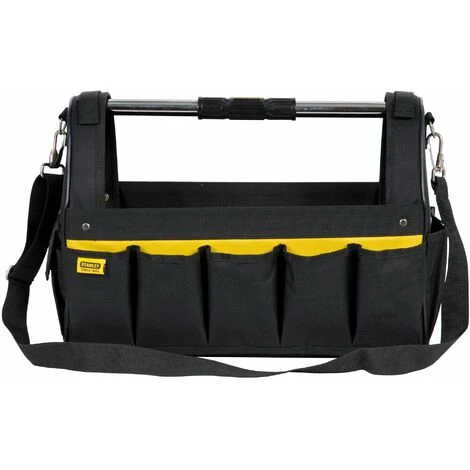 - Sacoche à outils ouverte avec bandoulière réglable et poignée de transport robuste en acier avec manchon ergonomique en caoutchouc, pour un transport facile.