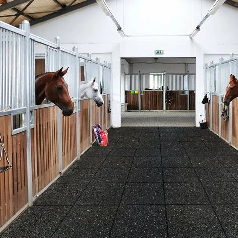 Le tapis stable en granulés de caoutchouc robustes et perméables à l’eau peut être utilisé de nombreuses façons. Le tapis en granulés résistant est particulièrement adapté à la pose dans les box, les allées d’écurie ou sur les allées pour chevaux ou bovins.