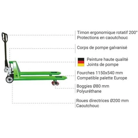 – Grâce à sa conception robuste et ses composants de qualités, ce transpalette est l’outil indispensable pour toutes les tâches de manutention