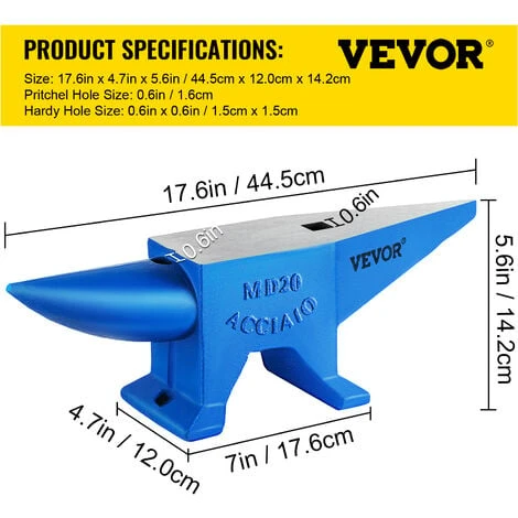 - Matériau de Haute Qualité 20 kg: Cette enclume en acier est fabriquée à partir d’un acier de haute qualité forgé au trempé, qui présente une dureté, une résistance et une durabilité élevées. Notre enclume en acier pour forgeron a un matériau d’excellente qualité de 50 HRC. Sa base solide lui confère également une grande solidité.